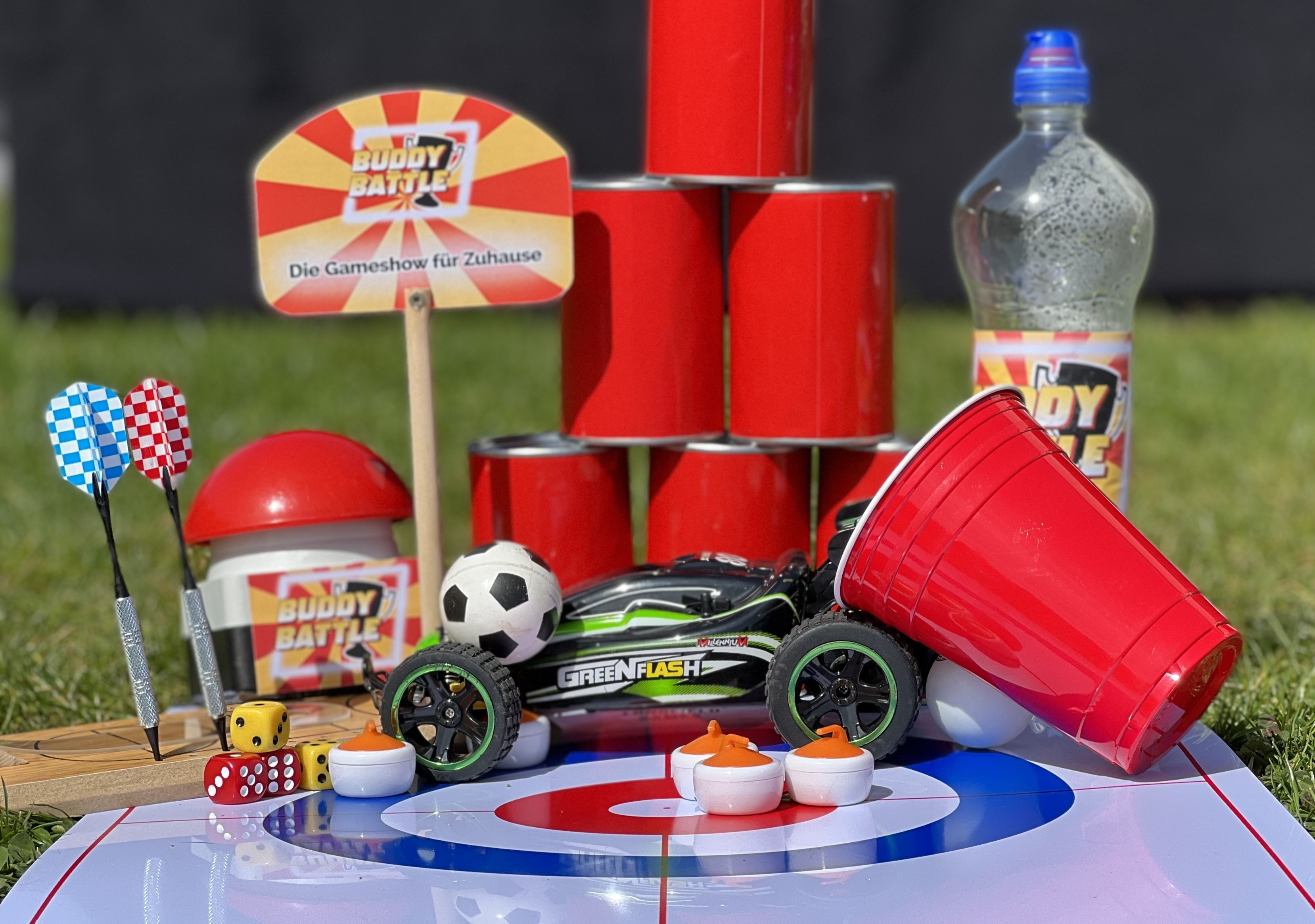 Egal ob Wohnzimmer, Garten, Lagerhalle oder Konferenzraum – wir verwandeln deinen Ort in eine echte Gameshow-Arena. In dieser treten in verschiedenen Spielen die Buddys gegeneinander an und kämpfen um den Sieg.